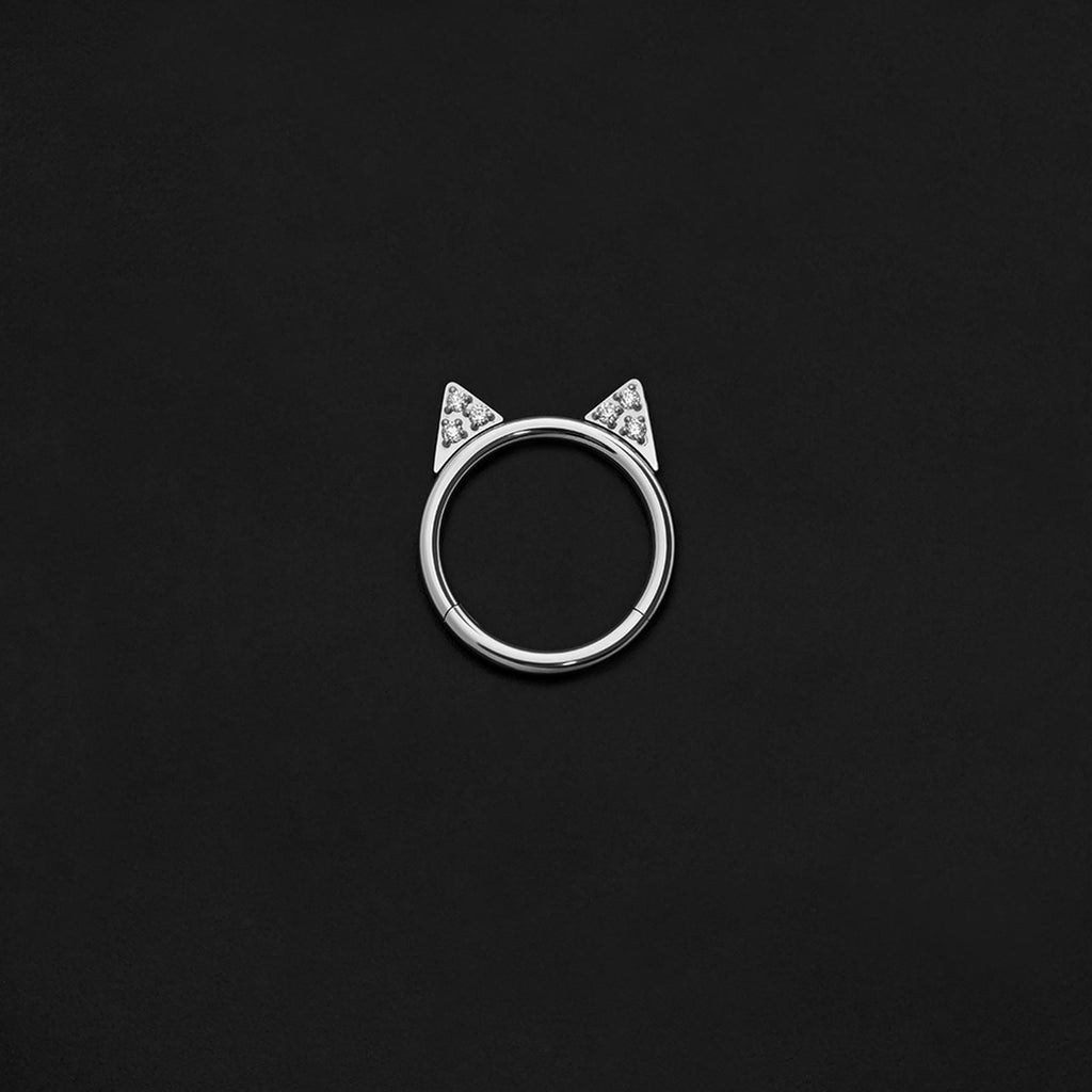 ASTM F136 Implant Grade Titanium Cat Ear CZ Clicker Nose Ring