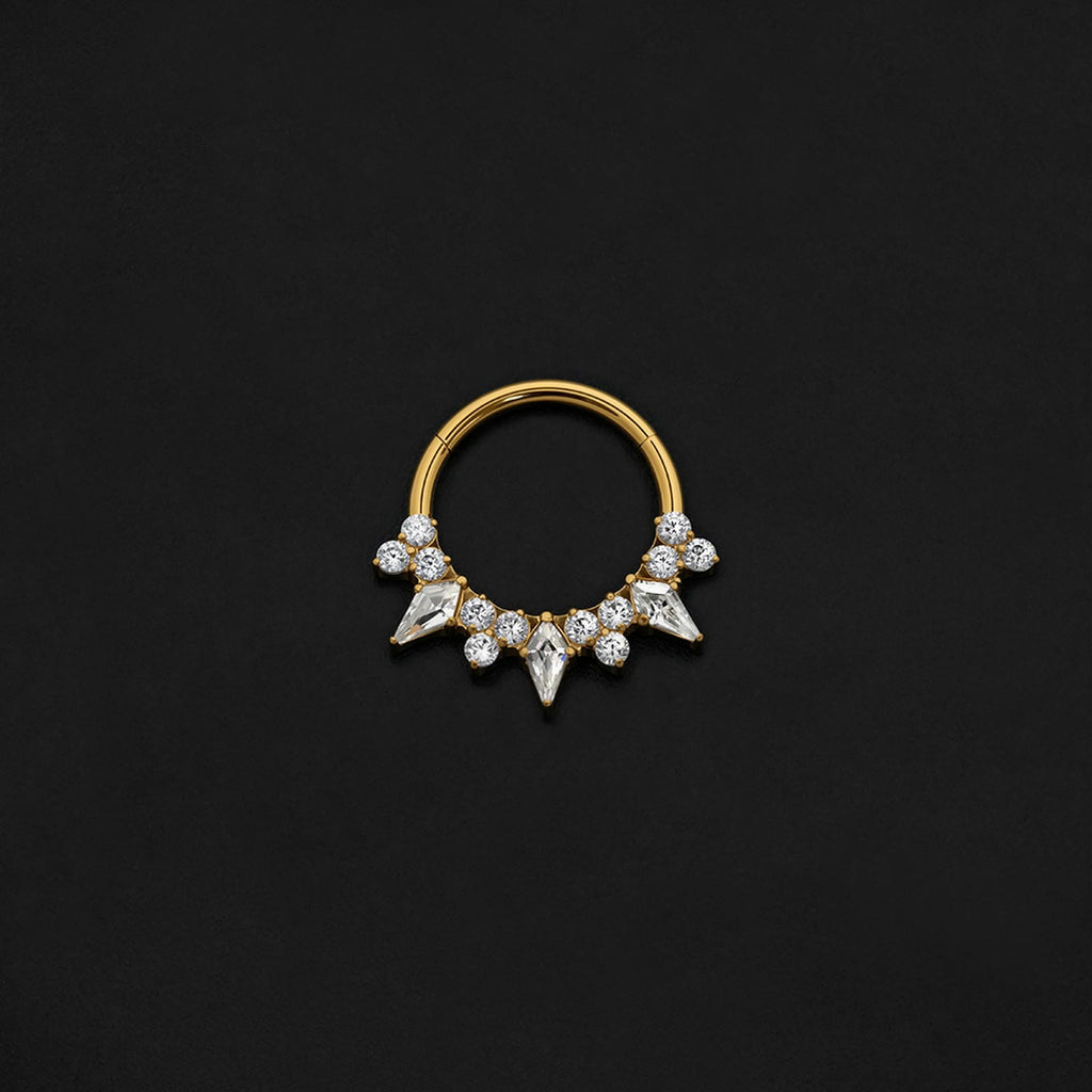 ASTM F136 Implant Grade Titanium Gold Double Snake CZ Hinged Ring Clicker