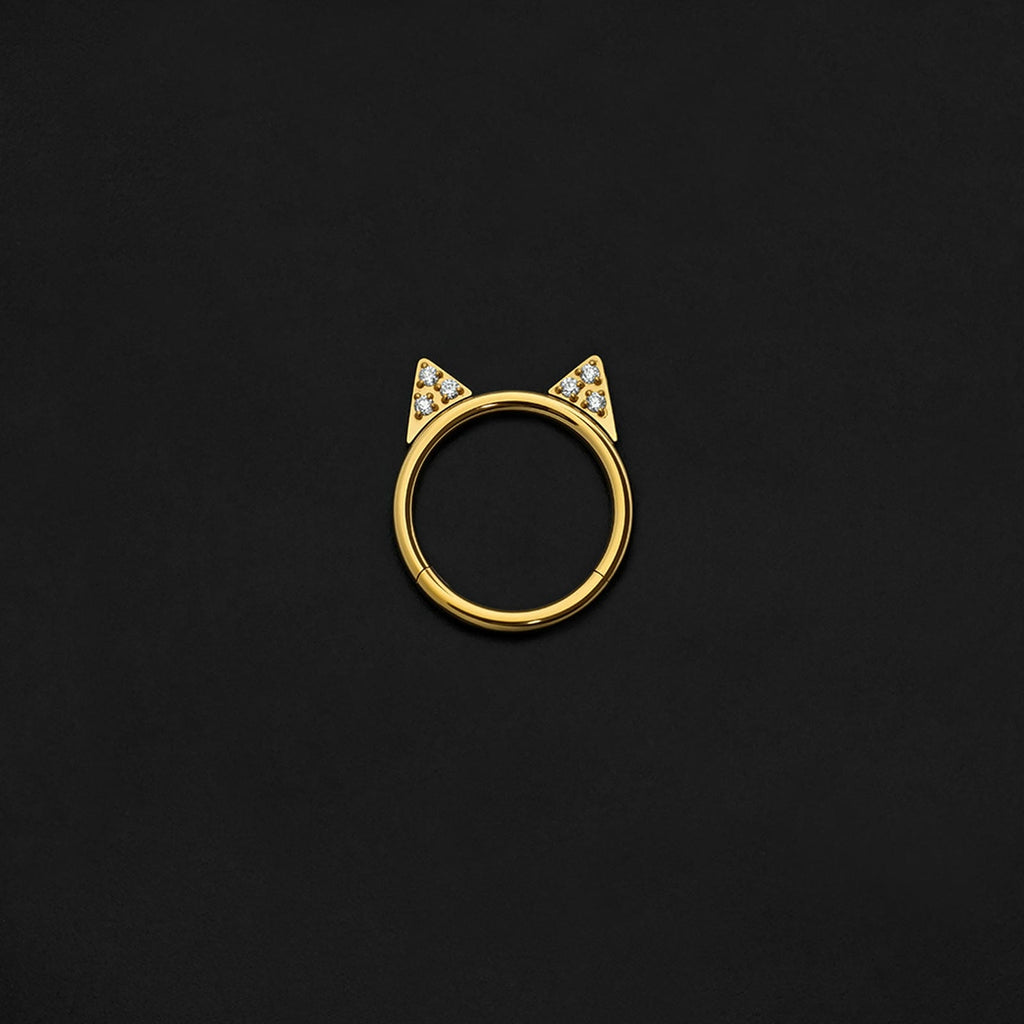 ASTM F136 Implant Grade Titanium Gold Cat Ear CZ Clicker Nose Ring