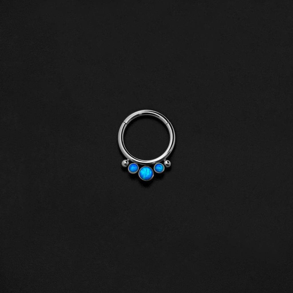 ASTM F136 Implant Grade Titanium 3 Bez Blue Opal Hinged Ring Clicker